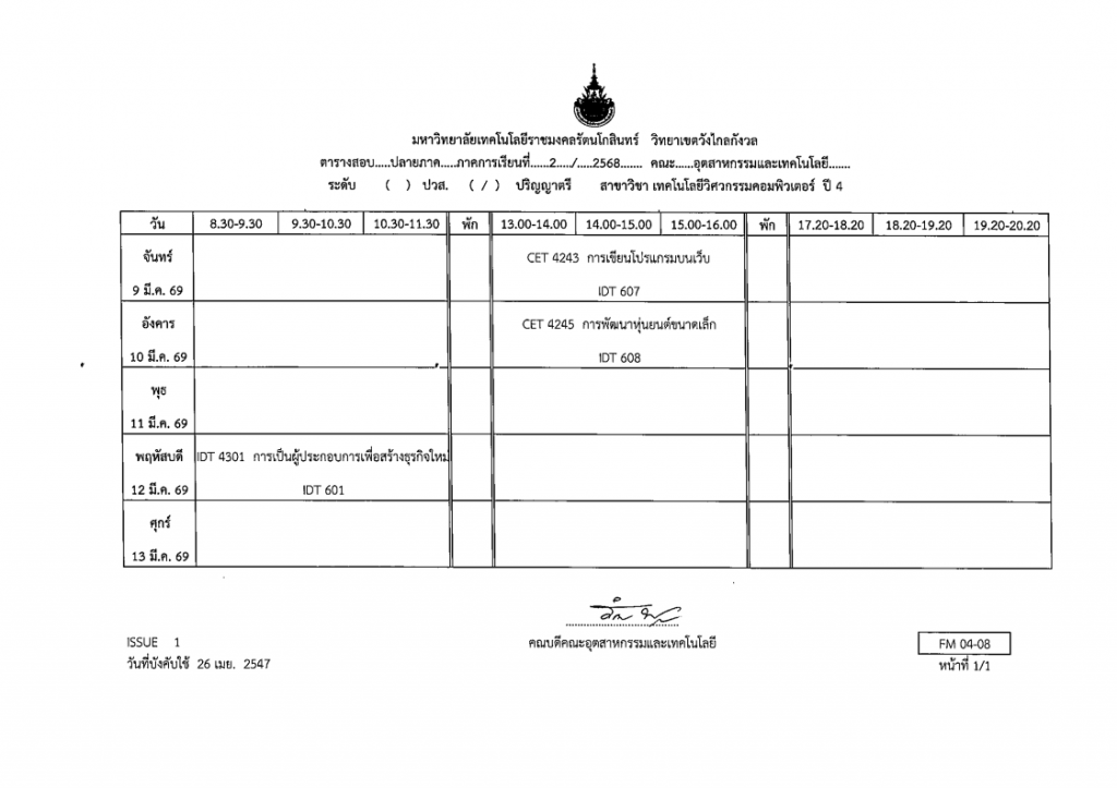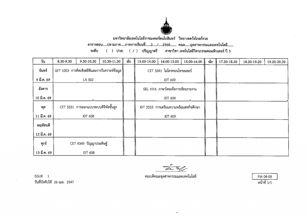 Post navigation ประกาศตารางสอบกลางภาค ภาคเรียนที่ 2 ปีการศึกษา 2568 ขอแสดงความยินดีกับบุคลากรสาขาเทคโนโลยีวิศวกรรมคอมพิวเตอร์ ที่ได้รับสนับสนุนทุนวิจัย ประจำปี 2569